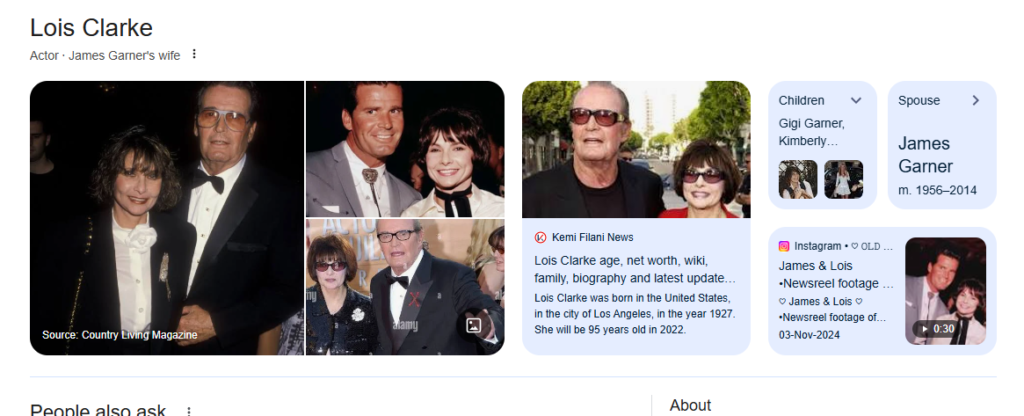 A1: Lois Clarke is an American woman best known as the wife of the legendary actor James Garner.